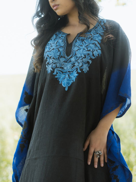 Midnight Sky Cotton Kaftan with Sapphire Blue Aari Embroidery