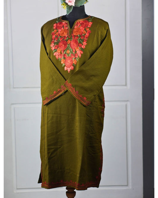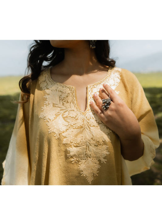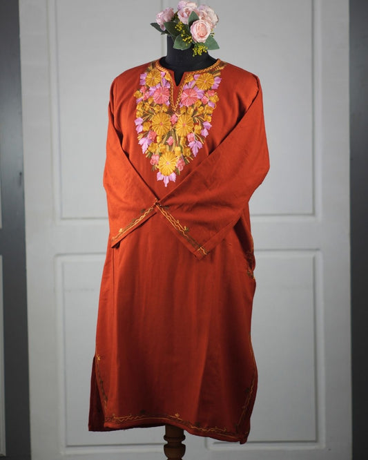 Kashmiri Aari Embroidered Phiran – Yellow , pink | Rust