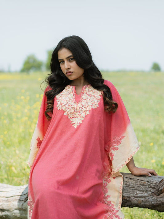 Coral Sunset Cotton Kaftan with Vanilla Cream Aari Embroidery
