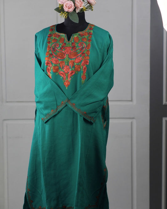 Kashmiri Aari Embroidered Phiran – Red & Green | Turquoise