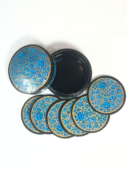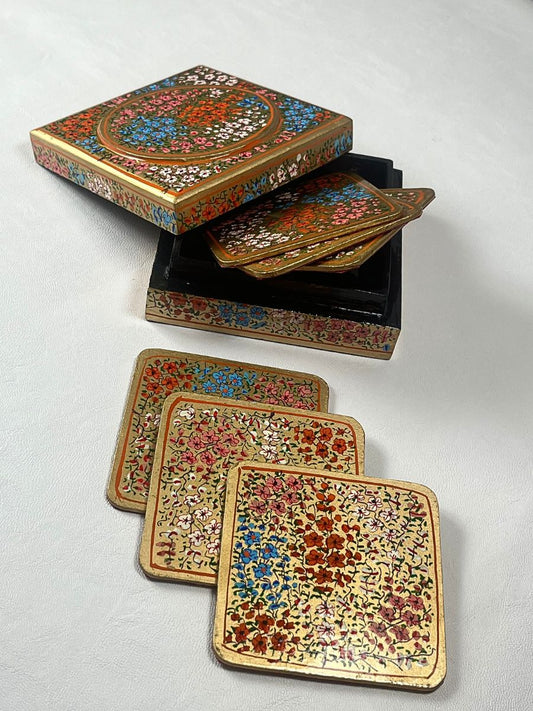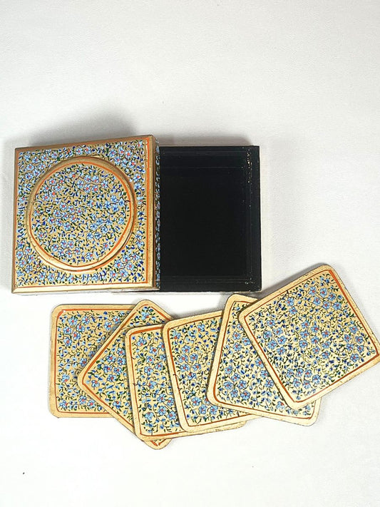 Eggshell Multicolor Chinar Motif Handmade Paper Mache Coaster Set