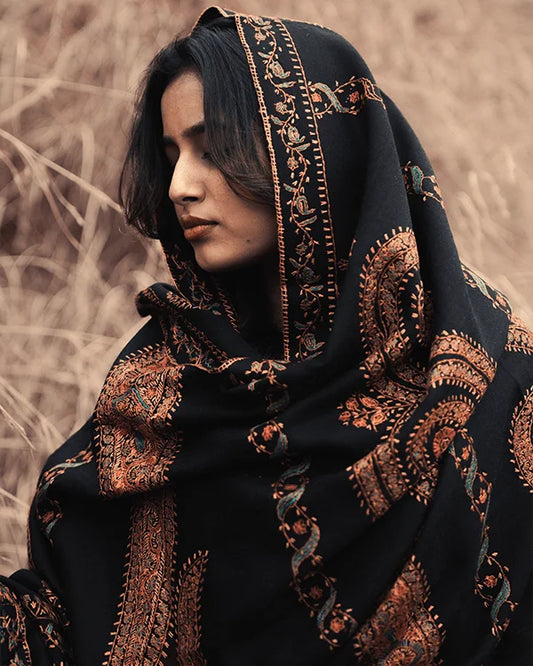 Black Tusha Shawl with Sozni Handwork Embroidery