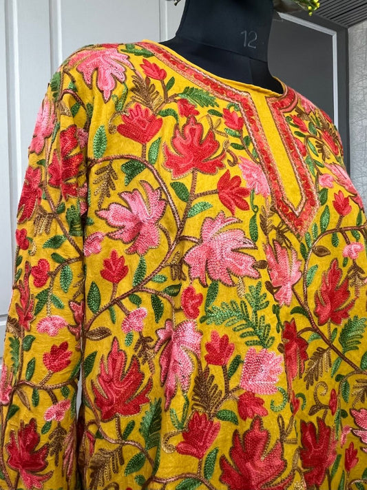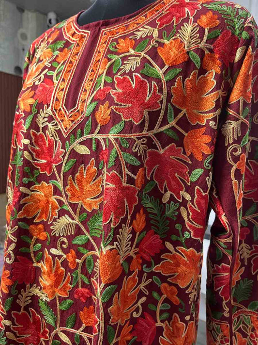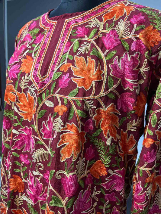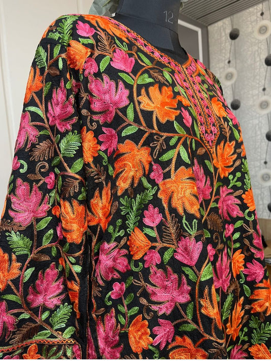 Black kashmiri aari worked phiran- with hues of green blue embroidery