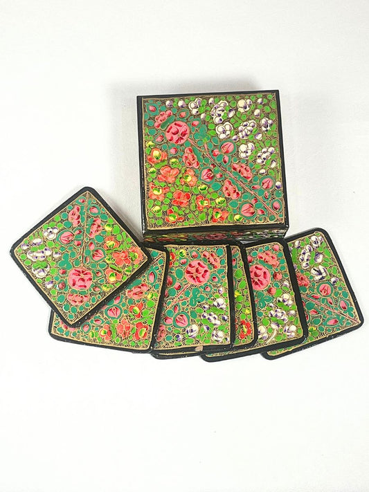 Golden Multi Floral Handmade Paper Mache Coaster Set