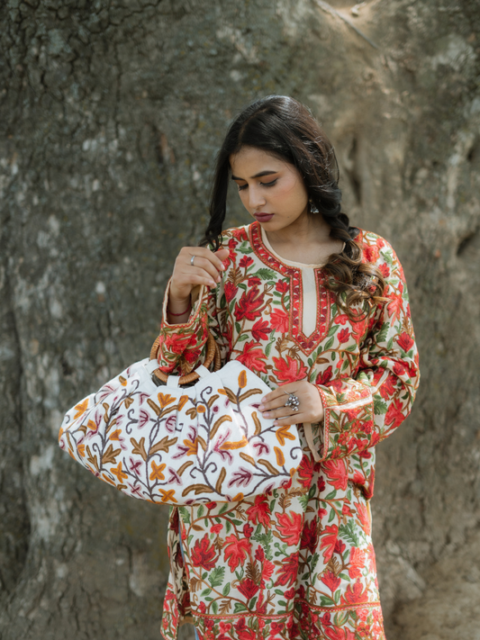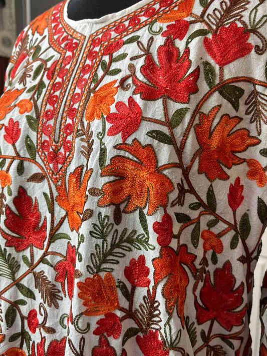 Coral Sunset Cotton Kaftan with Vanilla Cream Aari Embroidery