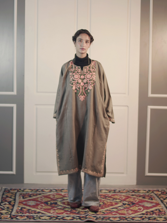 Kashmiri Aari Embroidered Phiran – Pink,purple and Brown| Turquoise