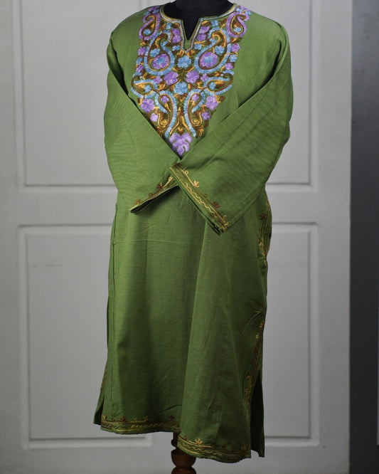 Kashmiri Aari Embroidered Phiran – Light Blue, Pink & Purple | Olive Green