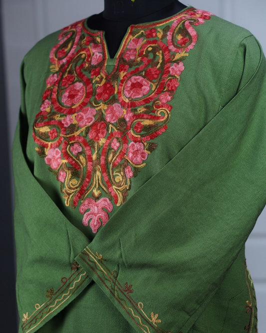 Kashmiri Aari Embroidered Phiran – Green & Pink | Mustard