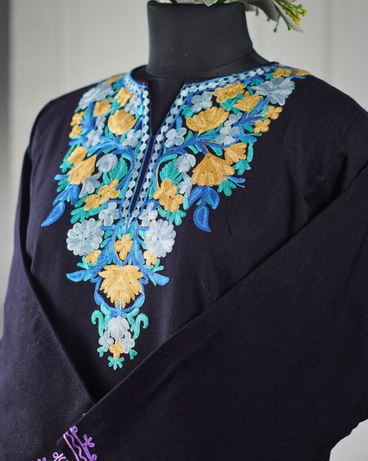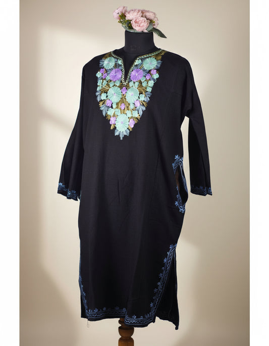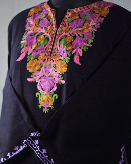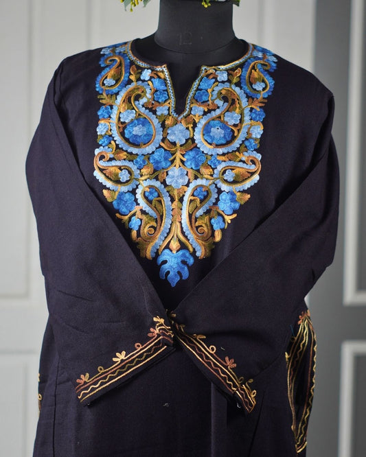 Kashmiri Aari Embroidered Phiran – Light Blue, Purple, Green | Black