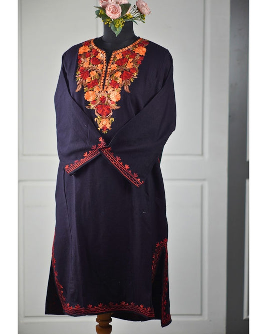 Kashmiri Aari Embroidered Phiran Kurtis – Maroon