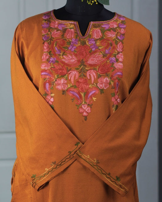 Kashmiri Aari Embroidered Phiran Kurtis – Classic Rust