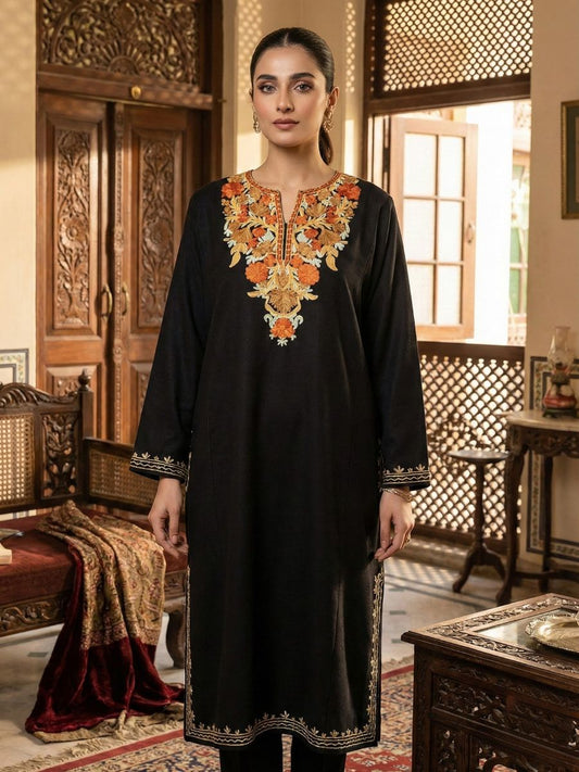 Kashmiri Aari Embroidered Phiran Kurtis – Black