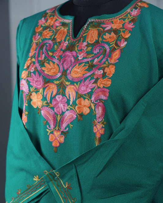 Kashmiri Aari Embroidered Phiran – Red & Green | Turquoise