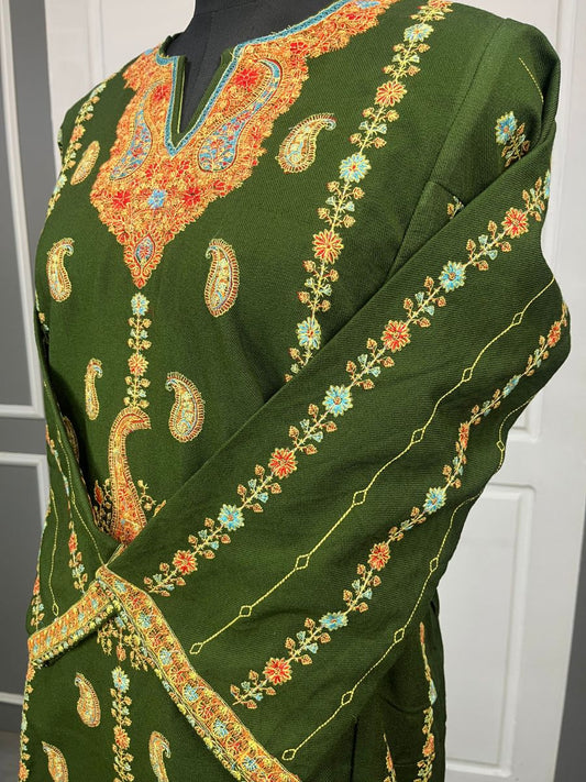 Kashmiri Sozni Embroidered Phiran |Mehndi
