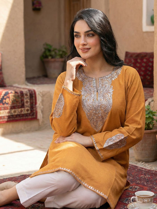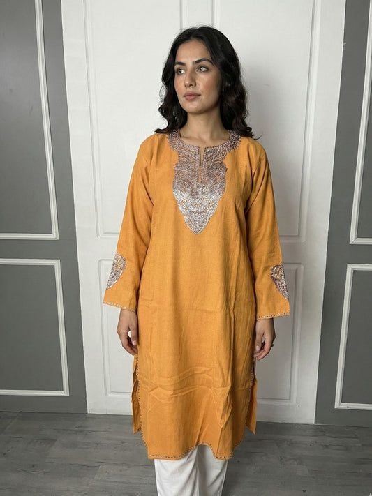 Kashmiri Soni Embroidered Phiran | Mustard