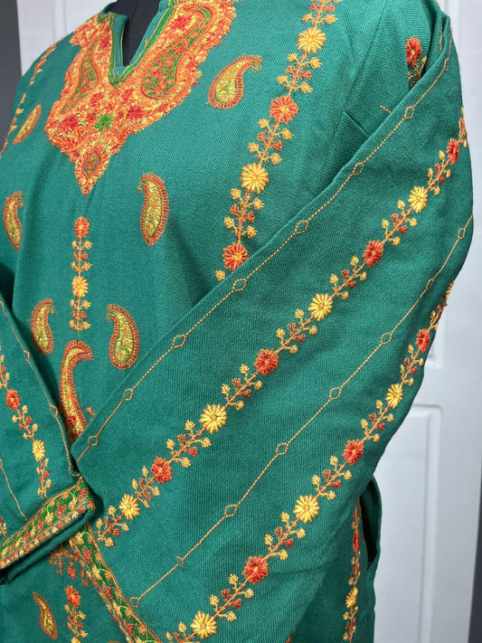 Kashmiri Soni Embroidered Phiran | Midnight Green