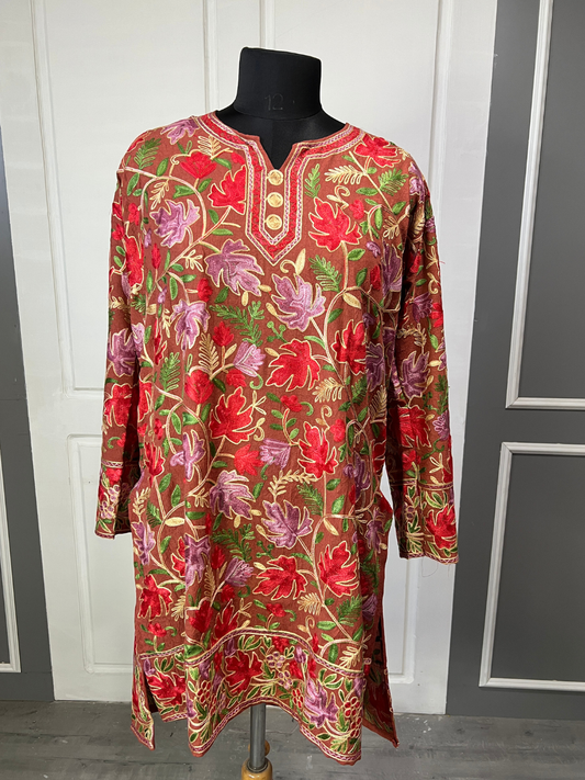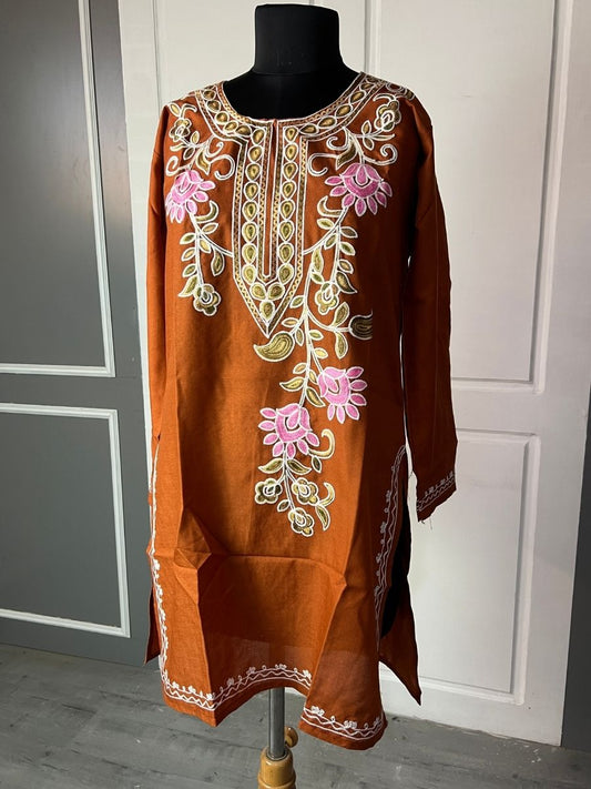 Noor : chinar embroidery summer kurti | Brown