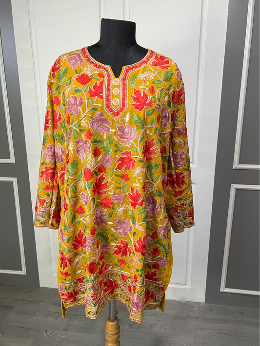 Noor : chinar embroidery summer kurti | Gold