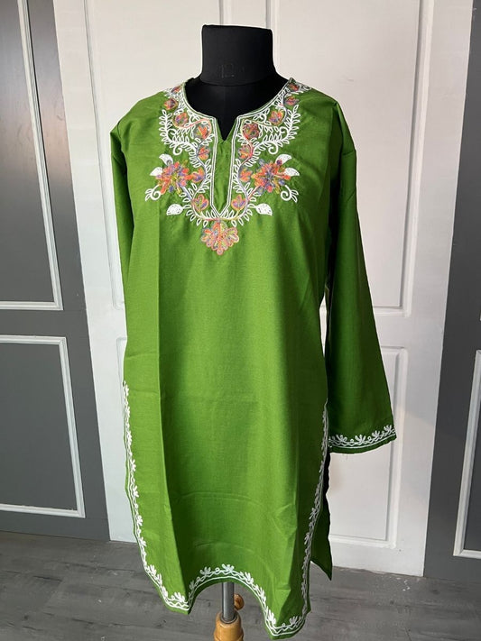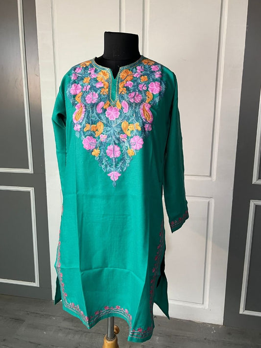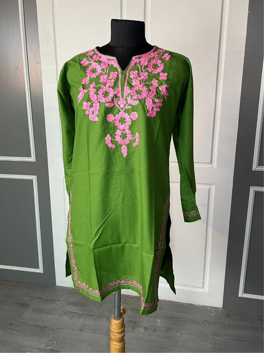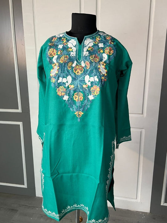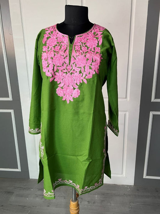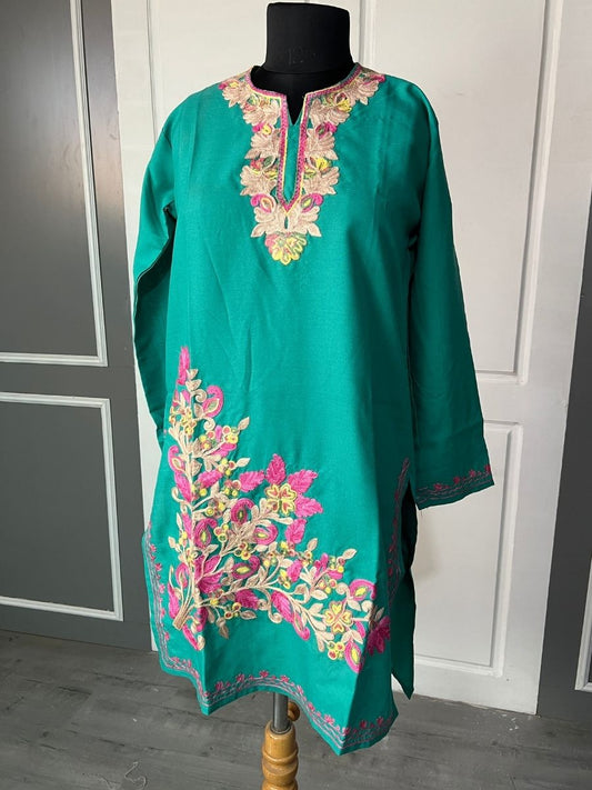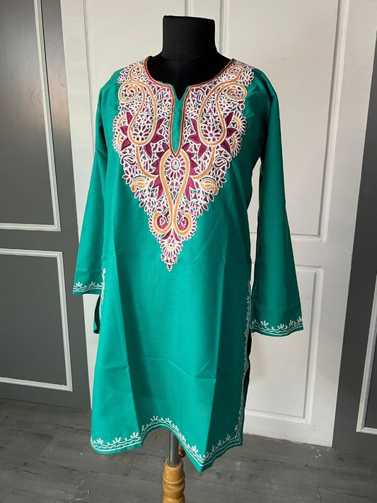 Noor : Aari embroidery summer kurti | Emerald Green
