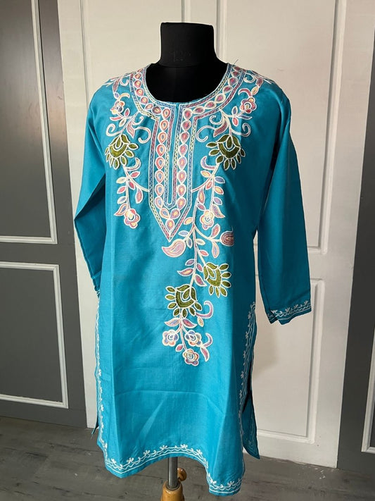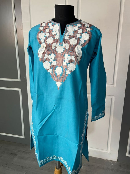 Noor : Aari embroidery summer kurti | Ocean Teal