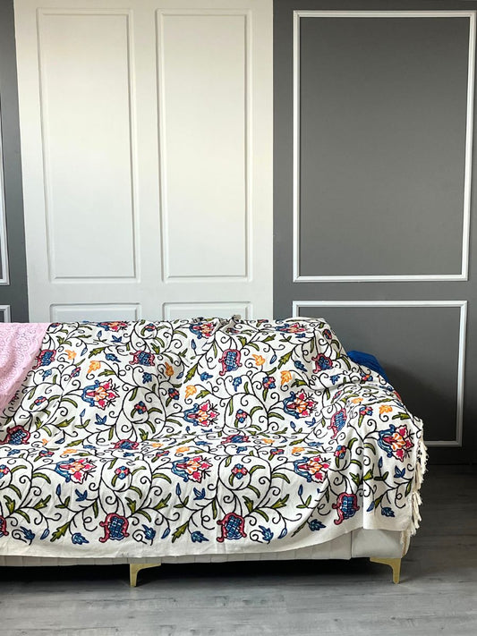 Gulistan Hand-Embroidered Krewel Sofa Throw Bedcover