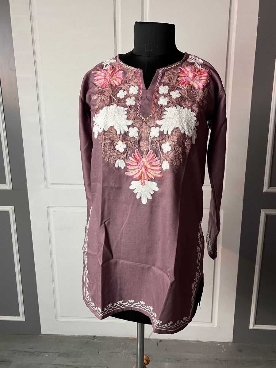 Noor : Aari embroidery summer kurti (1 of 1) There’s something special about a piece that feels as light as a summer breeze. This short kurti, in soft Ruby Cotton, is designed for those easy, sun-drenched days where you want to look effortlessly put together. It’s a 1-of-1 original—once it’s yours, no one else in the world will have the same one.