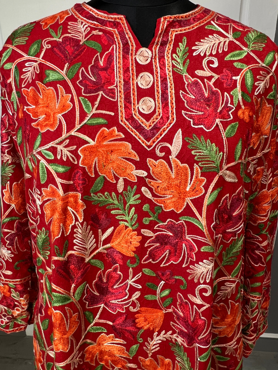 No two pieces are exactly the same. Because of our live embroidery process, the thread colors on your kurti are exclusive to you making your piece truly one-of-a-kind..
