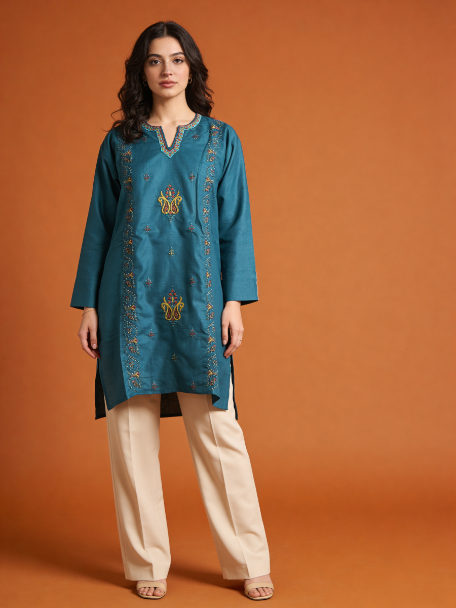 Noor : Sozni embroidery summer kurti | Dark Teal